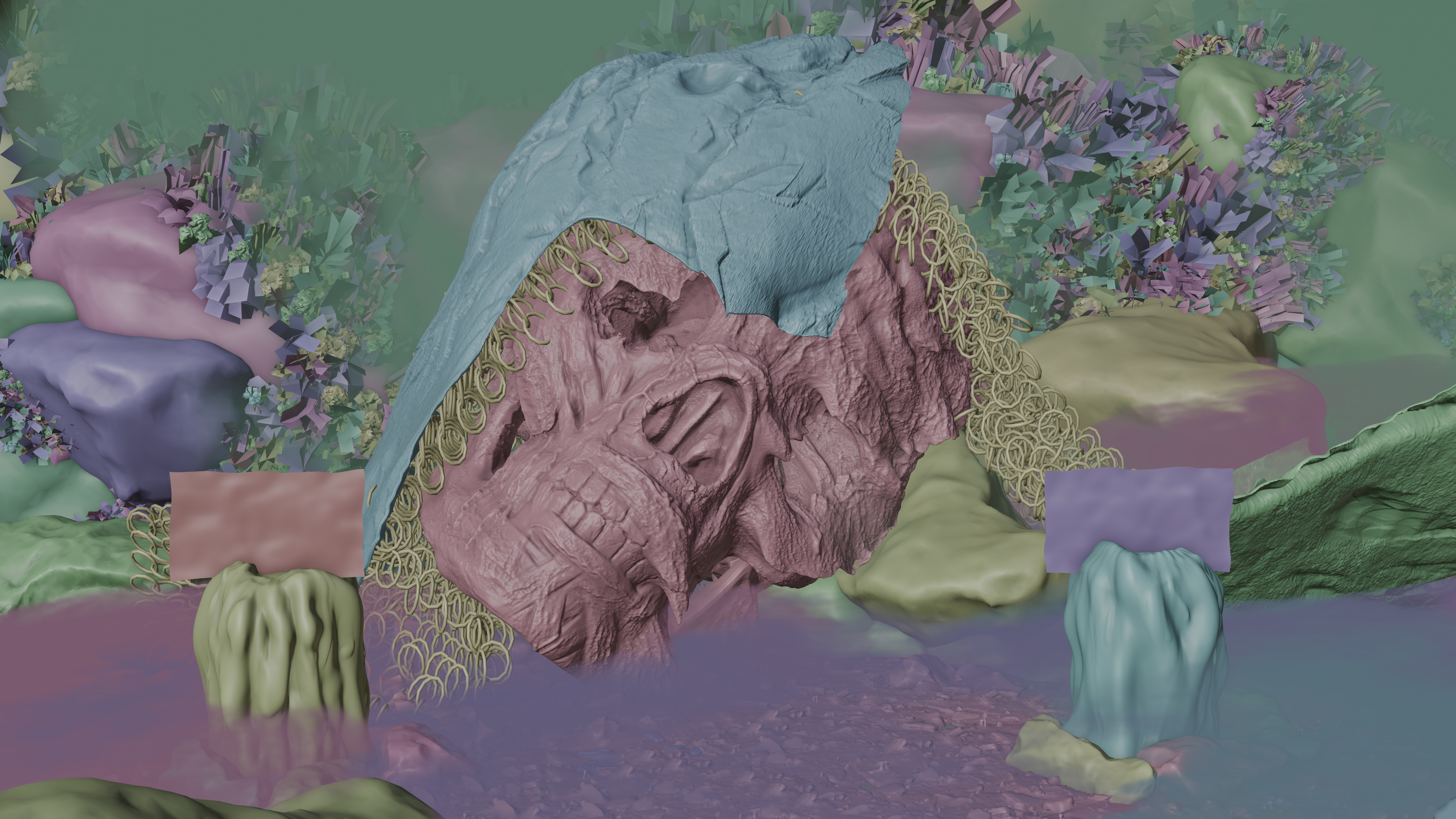 - Rocks on the ground and in the backround are 3d scans